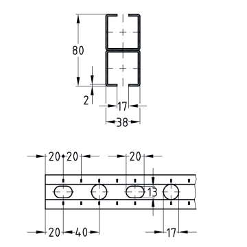 MPC-Systeemrail 38/80 H-Profiel, lengte 2.000 mm, gegalvaniseerd
