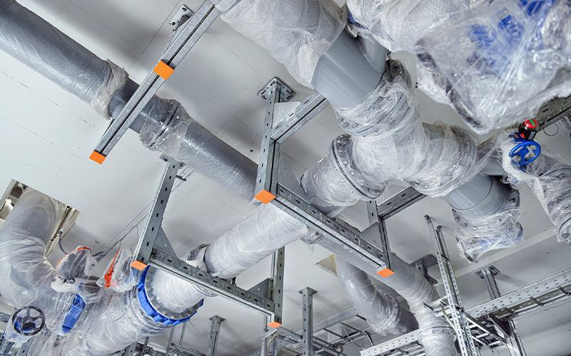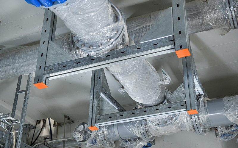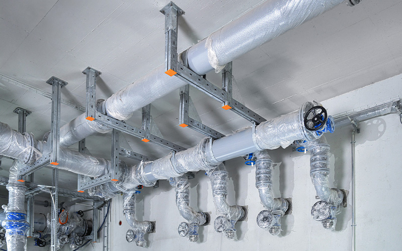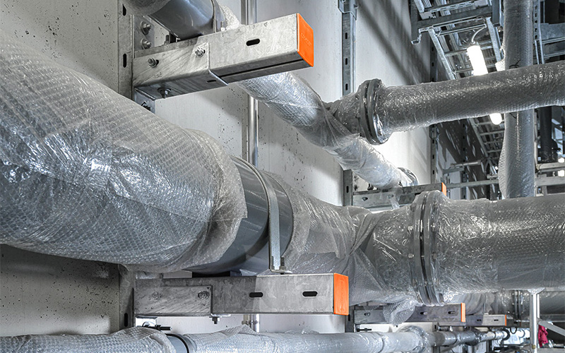 De waterzuiveringsinstallatie van Linden is uitgerust met innovatieve grondwaterzuiveringssystemen. De nieuwe buisdoorsneden werden aangepast aan de geplande en vereiste debieten. Om de hoge belastingen en de toegenomen buisdichtheid optimaal te ondersteunen, werden robuuste constructies uit het MPT-productassortiment van MÜPRO gebruikt. Het gecoördineerde MPT-bevestigingssysteem is geschikt voor de veilige installatie van zware buizen in industriële en installatiebouw.