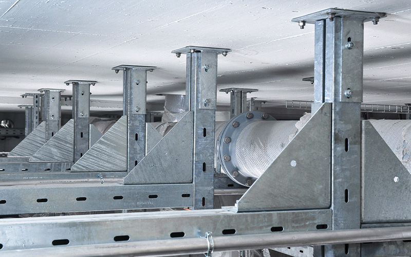 Volgens specificaties van Weber Energie und Umwelt Service GmbH berekende MÜPRO de statische eisen en ontwierp de ondersteuningen. Een bijzonder kenmerk van het project zijn de deels grote buisdiameters van DN 400 en DN 500, waarmee rekening moest worden gehouden tijdens de planning. In totaal werd meer dan zeven ton materiaal gebruikt. Dit garandeert een veilige en efficiënte bevestiging van de buizen en leidingen in de waterzuiveringsinstallatie.