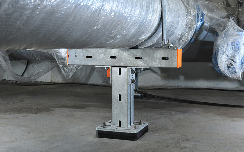De thermisch verzinkte MPT Q100-beugel werd in vier lengtes gemonteerd: 500, 750, 1000 en 2.000 mm. De grondplaat maakt directe bevestiging van de beugels mogelijk. MPT-hamerkopbouten in diverse uitvoeringen, ringen, draadstangen en diverse zeskantmoeren uit het MÜPRO-assortiment completeerden de constructie.