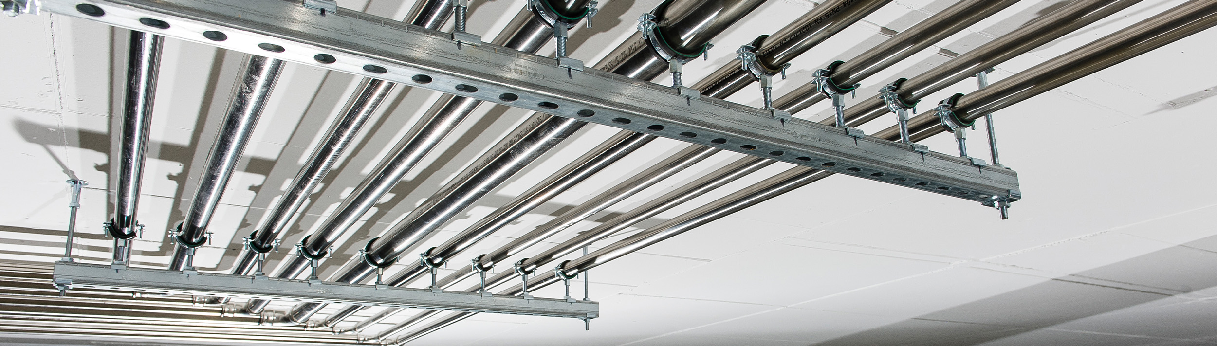 Het bovengetoonde constructievoorbeeld van de bevestiging van een afvoerleiding werd hiermee berekend. Het illustreert dat afhankelijk van de belasting een andere rail als optimale oplossing kan worden gekozen: